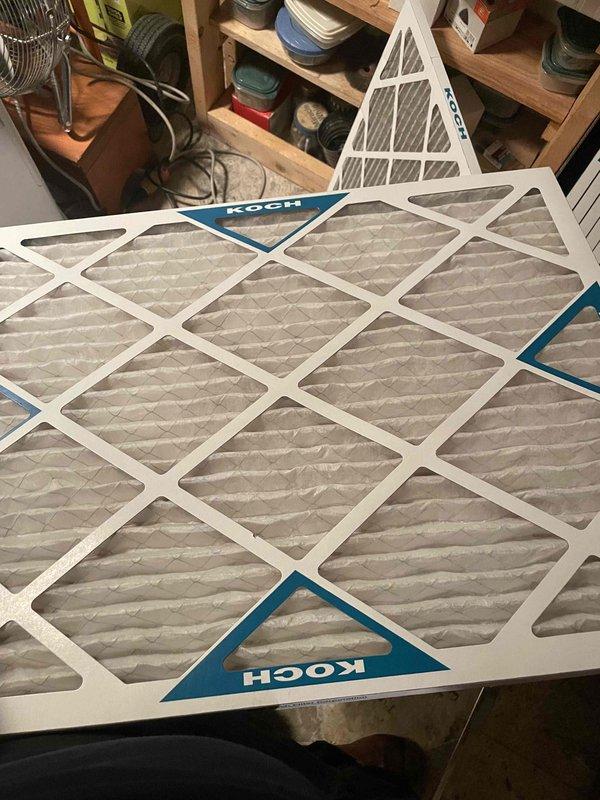 Completed cooling season tune-up on 7-year-old outdoor AC unit. Performed standard maintenance procedures including system inspection, component cleaning, and operational testing. Replaced HVAC air filters with new KOCH brand pleated filters to ensure proper airflow and system efficiency.