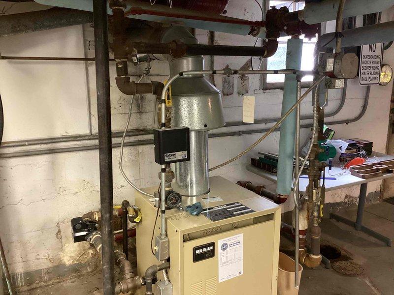 Performed annual maintenance tune-up on 26-year-old Dunkirk boiler system. Inspected all copper piping infrastructure, brass fittings, and ventilation ducts for proper operation. System is functioning correctly with no issues identified; customer informed of completed service.