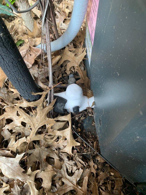 Responded to no cooling complaint on 10-year-old unit following previous service appointment. Upon arrival, found outdoor unit area heavily covered with dried oak leaves and debris obscuring components. Cleared extensive leaf accumulation from around condenser unit and refrigerant lines, removed obstructions affecting airflow and system operation, and verified proper system function after debris removal.