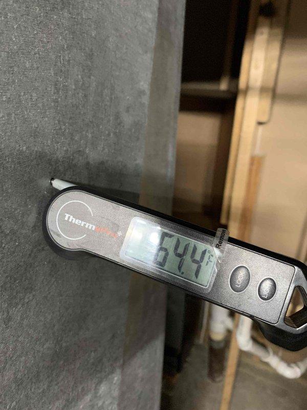 Responded to service call for reduced airflow from AC system. Upon arrival, verified thermostat was calling for cooling with setpoint at 73°F. Inspected Apollo furnace/air handler unit in basement and assessed blower operation, ductwork connections, and filter accessibility. System was running but experiencing diminished air delivery as reported. Documented equipment condition and thermostat settings with photos for service records.